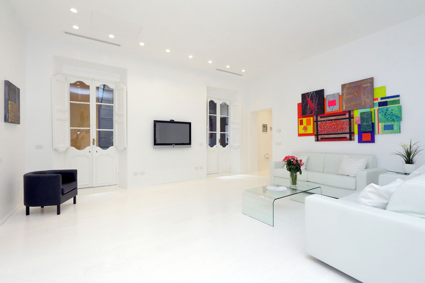 Origin of this scene comes from ambitious project of creating complete classical apartment, renovated and filled with furniture in very modern style.